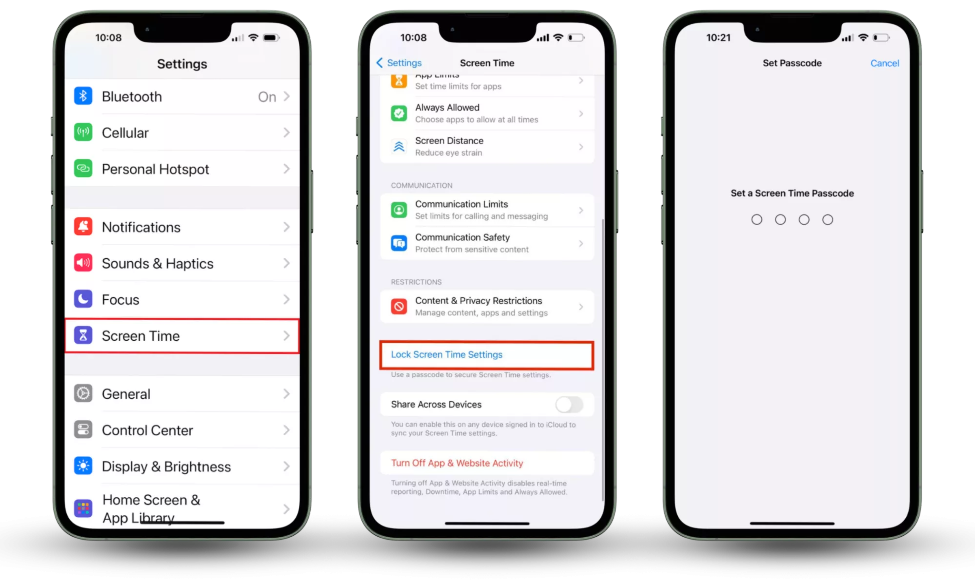 Кроки 1-3: Налаштування > Екранний час > Налаштування блокування екранного часу > Установити пароль для екранного часу.