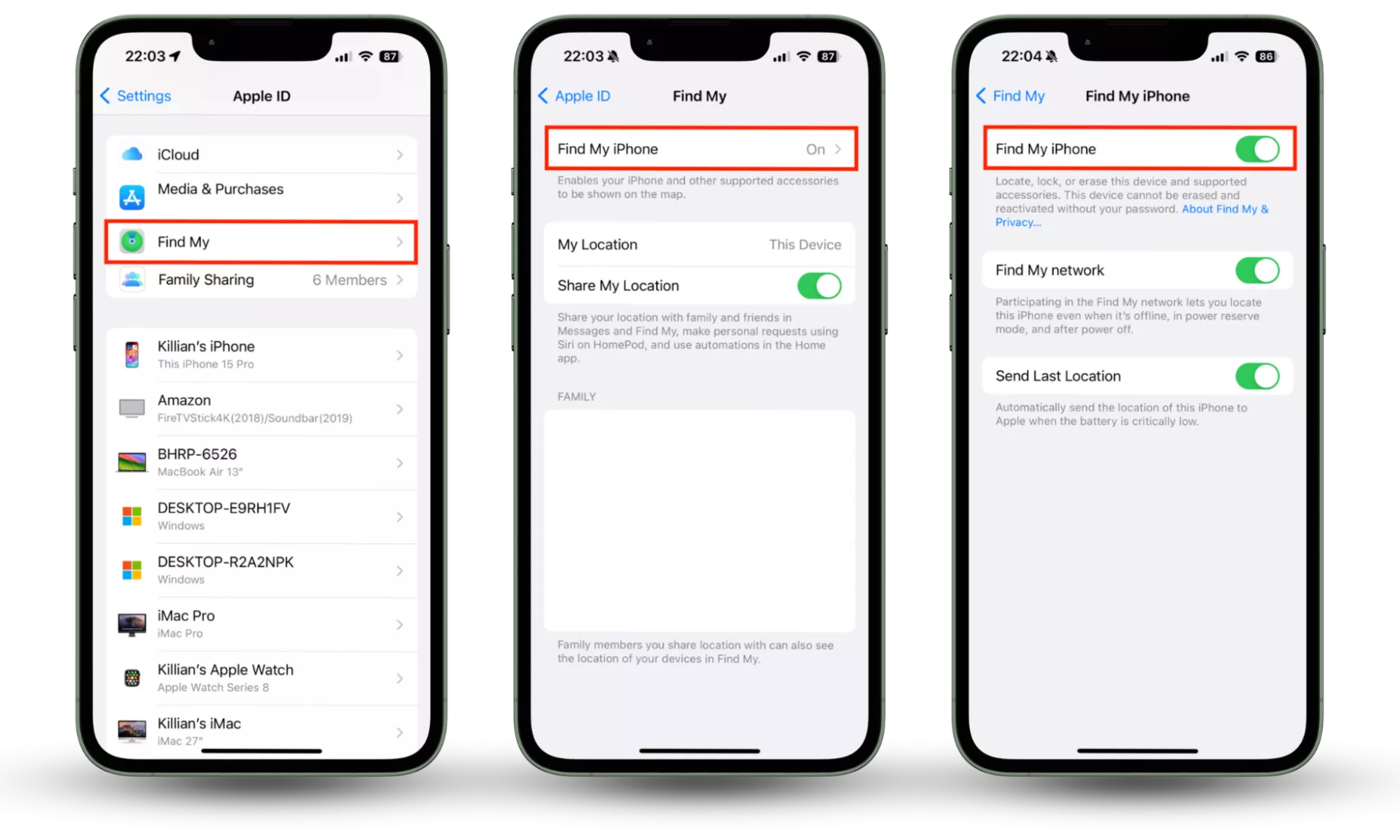 Крок 1-3: у налаштуваннях перейдіть до Apple ID > Find My і ввімкніть Find My iPhone.Щоб увімкнути самознищення на iPhone, виконайте такі дії: