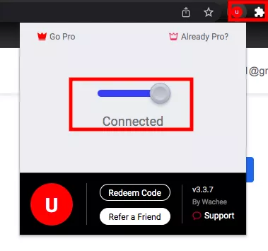 - Натисніть на вашзначок надбудови браузера,пошук проксі, іактивуйте його.