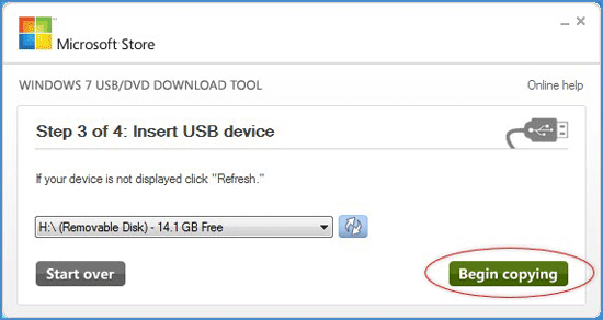3. Вставте флешку в комп'ютер. Виберіть назву USB-накопичувача зі спадної кнопки, а потім натиснітьПочати горіння.