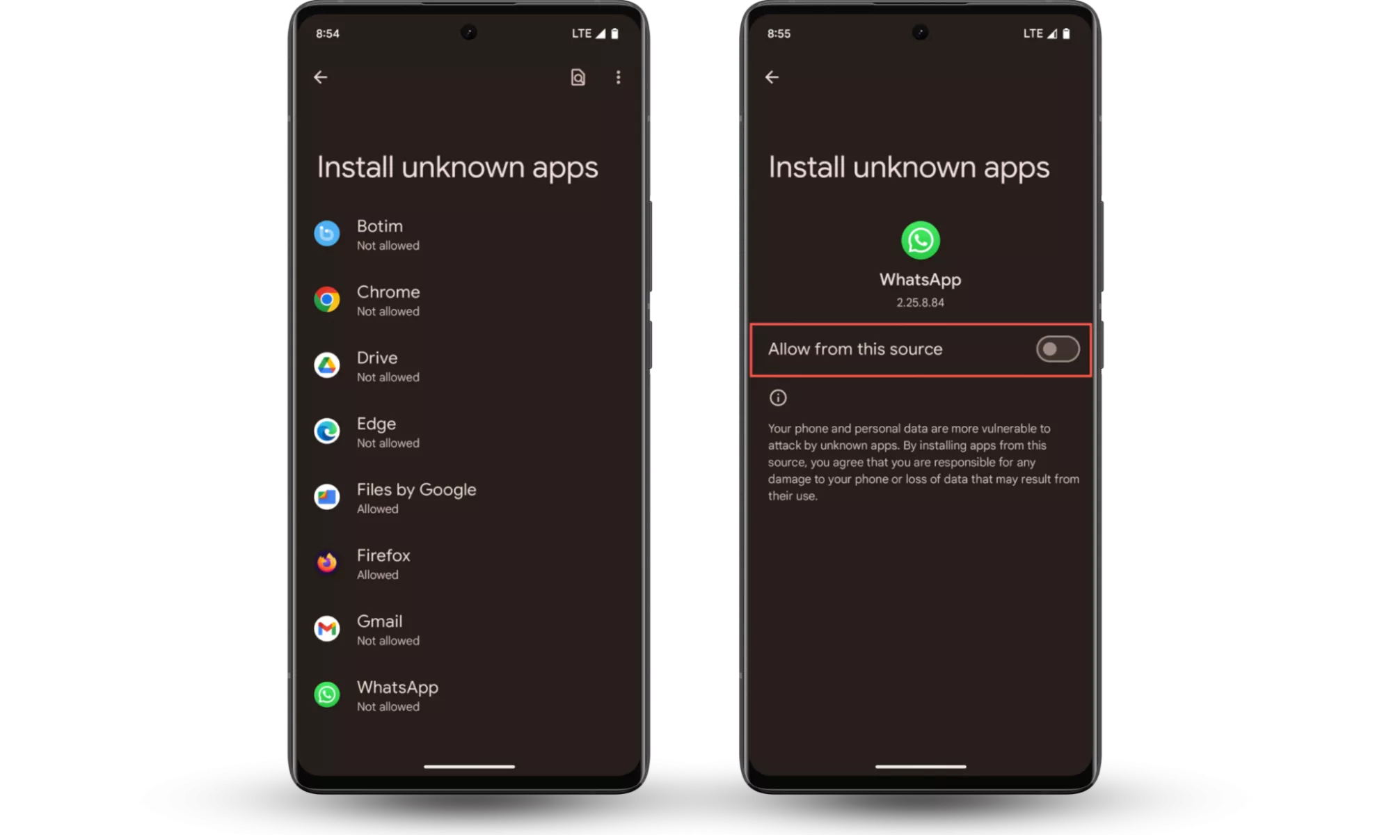 - Вимкніть перемикач, щоб припинити встановлення програм із невідомих джерел.