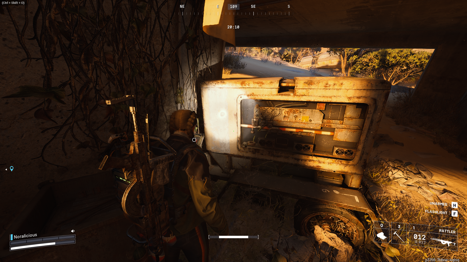 Між вентиляційними отворами на даху Складу на захід від Похованого міста.