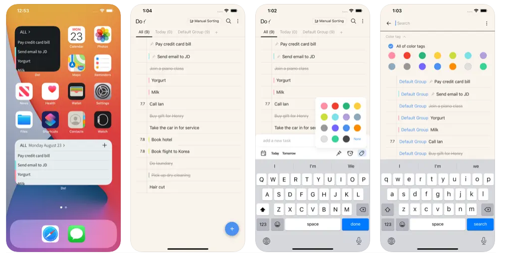 Коли справа доходить до безкоштовних програм для iOS, ця виділяється своєю простотою та швидкістю. Ви можете двічі торкнутися, щоб позначити завдання як виконане, сортувати елементи, як вам подобається, і налаштовувати все, від тем до шрифтів і кольорових тегів. Він навіть містить такі корисні інструменти, як віджет Today, параметри резервного копіювання та закріплення завдань для важливих елементів.