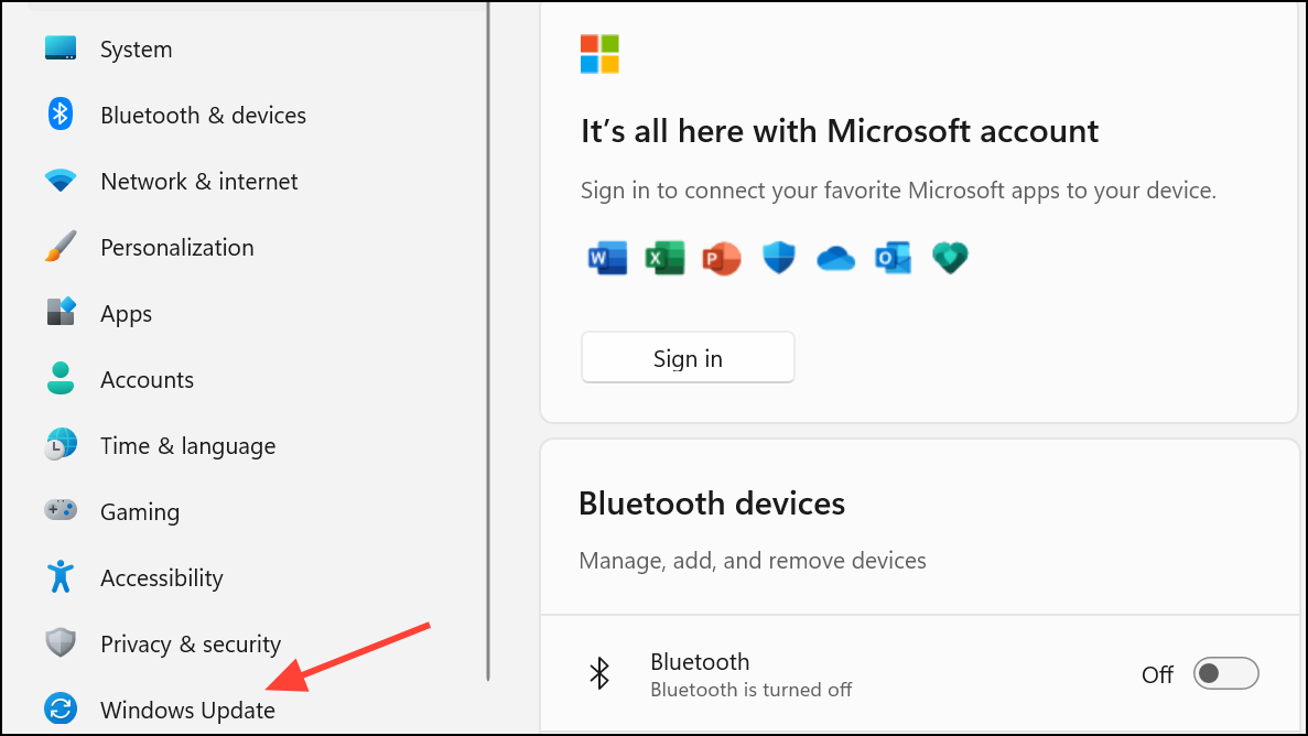крок 1:ВІДЧИНЕНОSettingsі перейдіть доWindows Update.