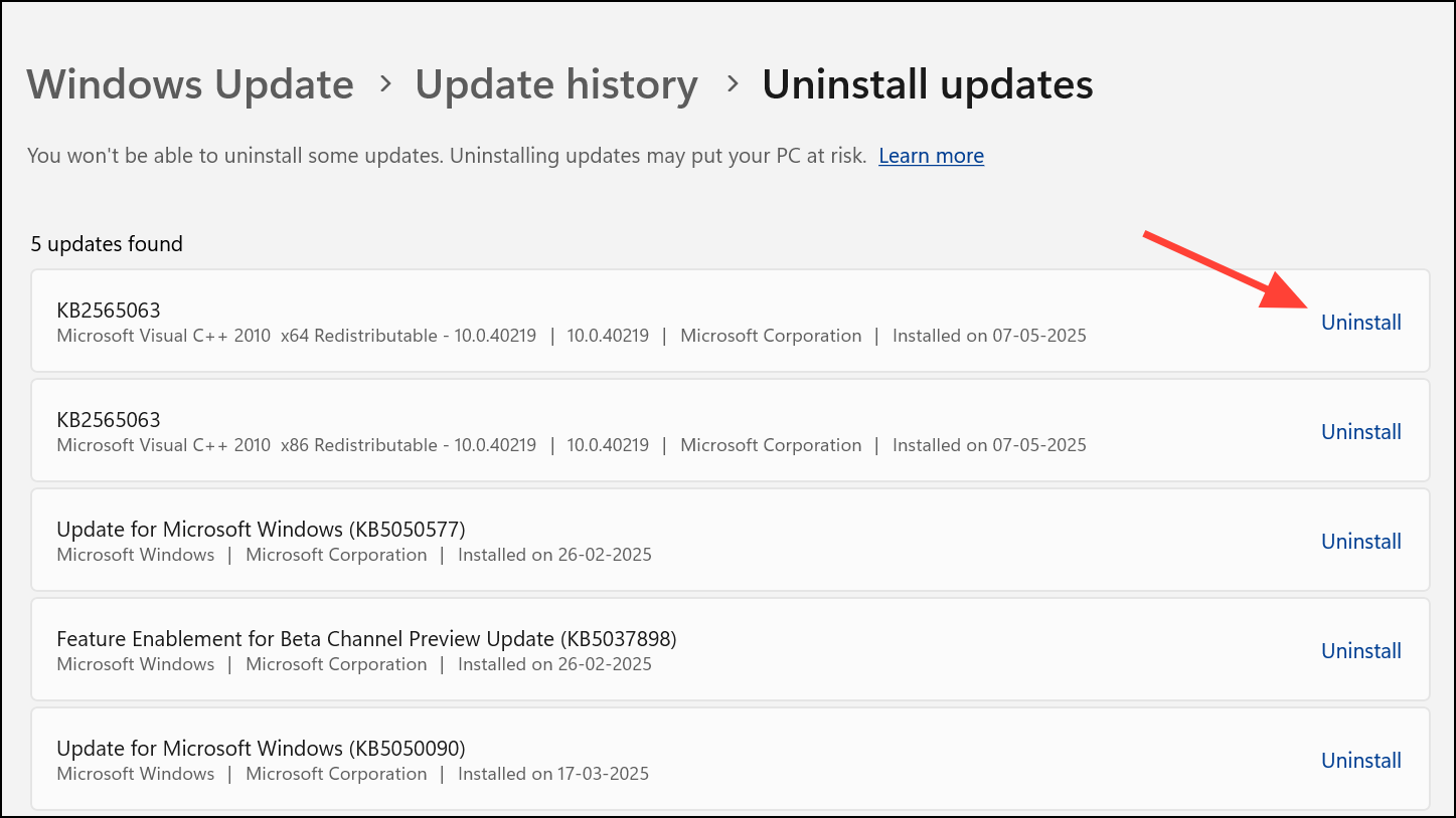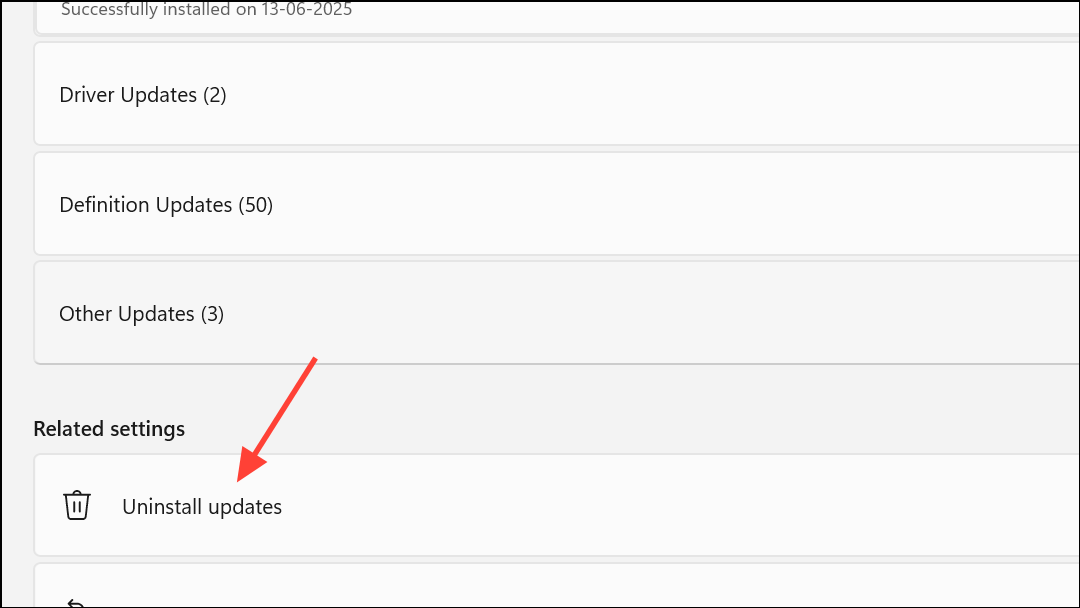 Крок 2:НатиснітьView update historyа потім виберітьUninstall updates.