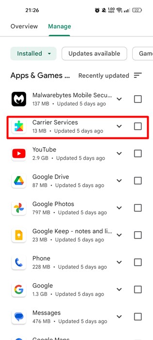 Іноді помилку викликає застаріла програма Carrier Services. Крім того, якщо ви отримуєте повідомлення про помилку «SIM Not Provisioned» без заміни SIM-карти, ймовірно, виникла проблема з Послугами оператора. Тому вам потрібно оновити додаток Google.