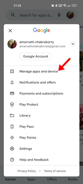 1. Відкрийте магазин Google Play і торкніться свогозображення профілю.