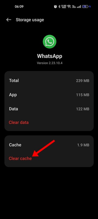 Застарілий або пошкоджений кеш також може перешкодити WhatsApp надіслати SMS-код. Тому дуже важливо очистити кеш програми WhatsApp і перевірити, чи це допоможе.
