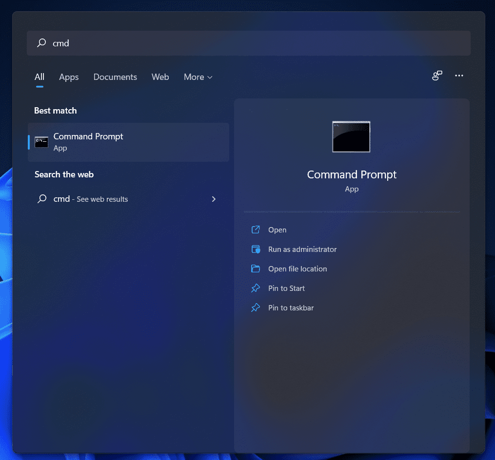 - Клацніть правою кнопкою мишіКомандний рядока потім натисніть наЗапустіть від імені адміністратора.