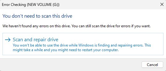 Утиліта перевірки помилок перевірить наявність помилок. Після цього спробуйте відформатувати його знову; цього разу ви не отримаєте повідомлення про помилку.