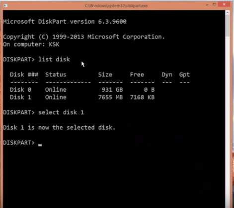 4. Введітьвибрати диск disk_number. Обов’язково замініть ‘disk_number’ на номер вашого диска.