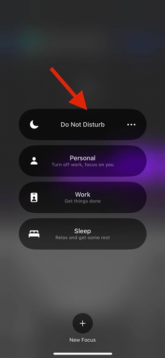 Якщо ваш режим концентрації активний із певним профілем, вимкніть його, щоб вимкнути звук дзвінків на вашому iPhone. Ось як вимкнути режим фокусування.