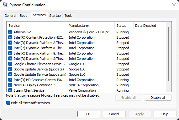 - Якщо помилка не відображається в стані чистого завантаження, можливо, вам доведеться вручну ввімкнути один процес за іншим і побачити, хто винуватець. Визначивши його, вимкніть або видаліть програмне забезпечення.
