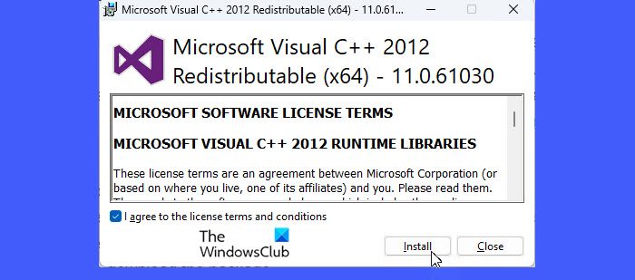 Visual C++ Redistributable Packages встановлює компоненти середовища виконання бібліотек Visual C++ (Standard C++, C Runtime, ATL, MFC, C++ AMP тощо), які потрібні для запуску програм, розроблених у середовищі Visual Studio 2012 IDE, у системах Windows 11/10, у яких не встановлено Visual Studio 2012. Якщо причиною помилки є відсутня бібліотека Visual C++, її можна виправити, інсталювавши.