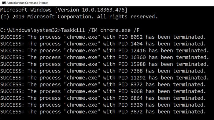 Введіть і натисніть Enter, щоб вимкнути Chrome.